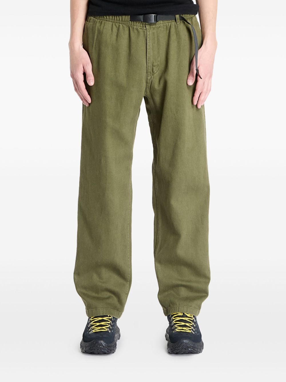 wide-leg trousers Highlights - Olive green - Buckle fastening - Elasticated waistband - Two side slash pockets - Straight hem Imported Composition Hemp 55%, Cotton 45%