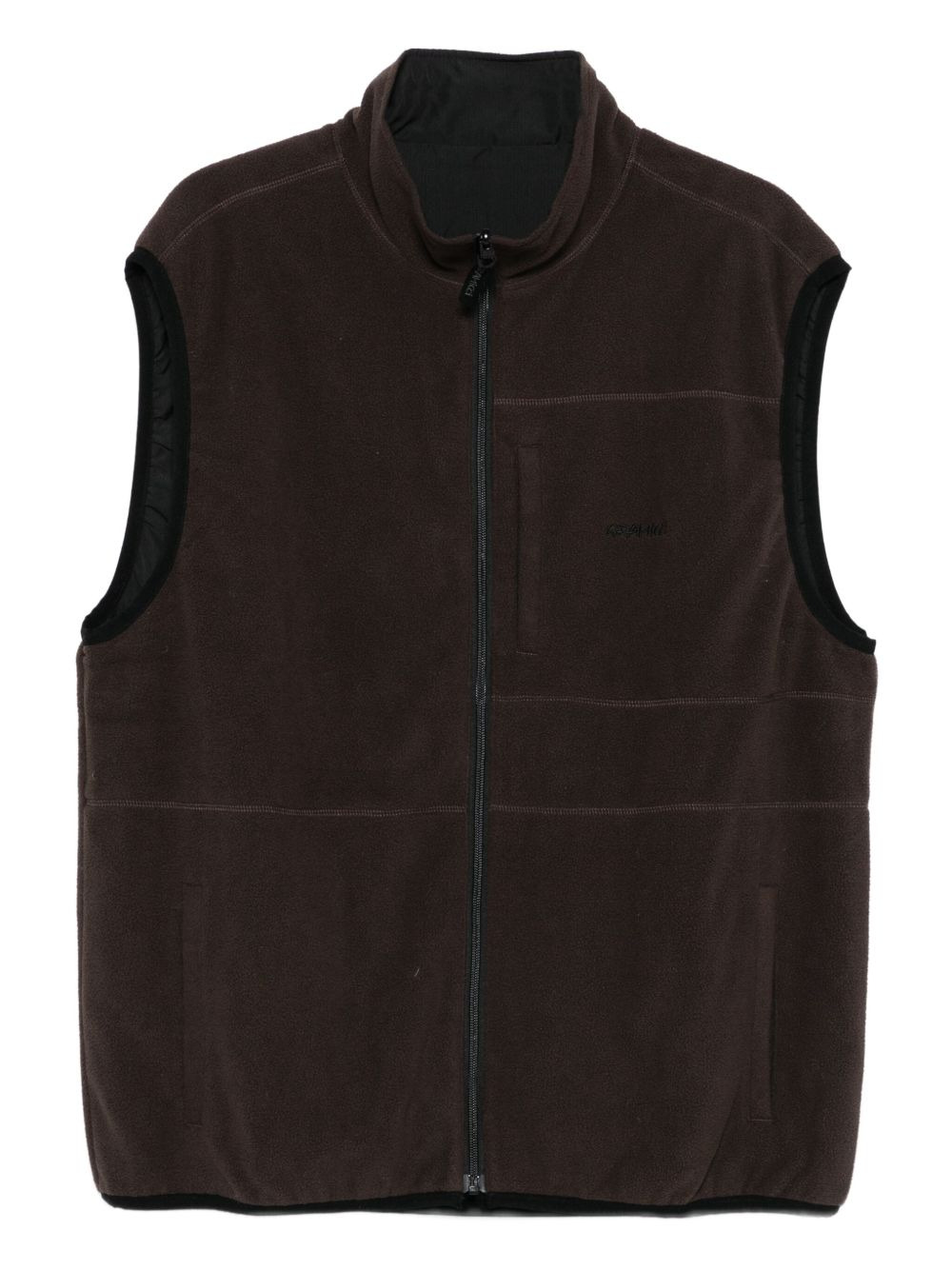 zip-up gilet Highlights - Brown - Front zip fastening - High neck - Chest slit pocket - Sleeveless Imported Composition Recycled Polyester 100% Washing instructions Read Manufacturer Guidelines