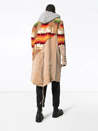 50/50 hooded coat More is always more... Constructed from cotton-wool, this 50/50 hooded coat from Greg Lauren proves that minimalist is not quite our thing and neither do yours. Go bold and dare to use. Featuring a drawstring hood, a front button fastening, long sleeves, contrasting panels, distressed effects, side pockets, button cuffs and drawstring details. POSITIVELY CONSCIOUS: Greg Lauren scores 4 out 5 by independent ethical brand rating agency Good On You. It uses a high proportion of eco-friendly and recycled materials, while Its products are manufactured both in-house by the owner and a small team and locally to reduce its carbon footprint. Made in United States Composition Outer: Wool 82%, Cotton 18% Lining: Cotton 100%, Polyurethane 100% SIZE & FIT Model measurements Height 6 ft 2 in(1.88 m) Bust/Chest 35.03 in(89 cm) Hips 35.82 in(91 cm) Waist 27.95 in(71 cm) Washing instructions Dry Clean Only