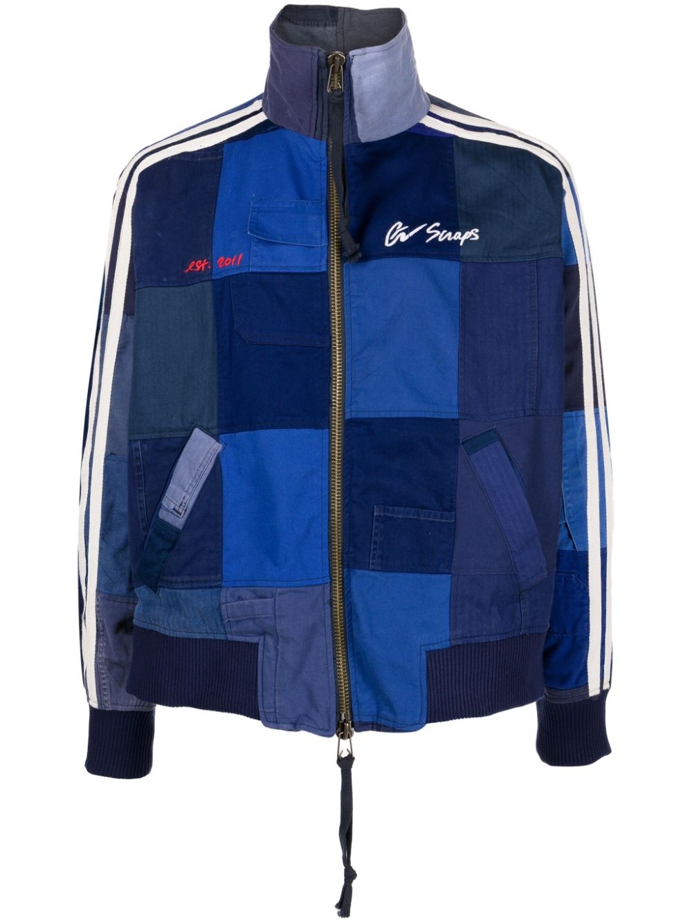 logo-embroidered patchwork jacket Highlights - Blue/multicolour - Cotton - Patchwork design - Embroidered logo at the chest - High neck - Front two-way zip fastening - Long sleeves - Ribbed cuffs and hem - Two diagonal pockets to the sides - Straight hem Made in United States Composition Outer: Cotton 100% Lining: Rayon 100% Washing instructions Dry Clean Only