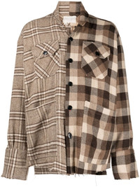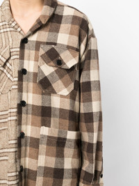 mix-print long-sleeve shirt Highlights - Brown - Wool blend - Check pattern - Mix print - Shawl lapels - Front button fastening - Drop shoulder - Long sleeves - Buttoned cuffs - Two chest flap pockets - Two front patch pockets - Frayed edge Made in United States Composition Wool 59%, Polyester 25%, Cotton 10%, Nylon 3%, Acrylic 3% SIZE & FIT Model measurements Height 6 ft 2 in(1.87 m) Bust/Chest 31.49 in(80 cm) Hips 37.79 in(96 cm) Waist 27.95 in(71 cm) Measurement CHEST 49.6 in(126 cm) SLEEVE LENGTH 36.22 in(92 cm) Shoulder Width 21.65 in(55 cm) FittingInformation Designed for a relaxed fit, this piece allows for comfort and movement when worn Made from a midweight non-stretch fabric This piece fits true to size – take your usual size Washing instructions Dry Clean Only