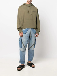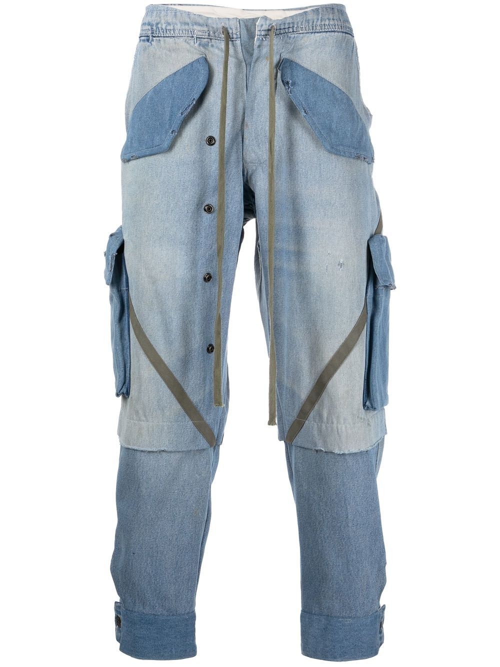 panelled tapered jeans Highlights - Blue - Cotton - Panelled design - Drawstring waist - Two side flap pockets - Tapered leg Made in United States Composition Cotton 100% SIZE & FIT Model measurements Height 5 ft 10 in(1.79 m) Bust/Chest 33.07 in(84 cm) Hips 35.82 in(91 cm) Waist 24.01 in(61 cm) FittingInformation This piece fits true to size. We recommend you get your regular size Designed for a slim fit at the waist and loose over the leg Made with a mid-weight non-stretch fabric Washing instructions Machine Wash