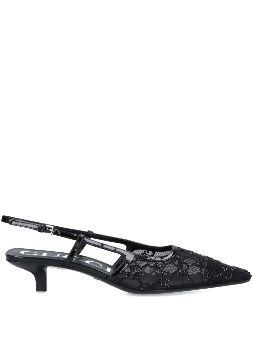 35mm crystal slingback pumps Highlights - Black - Crystal embellishments - Slingback strap - Pointed toe - Kitten heel - Logo pattern Made in Italy Composition Outer: Mesh 100% Lining: Leather 100% Sole: Leather 100%