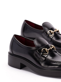40mm Horsebit loafers Highlights - Black - Calf leather - Patent finish - Horsebit detail - Moc stitching - Round toe - Branded leather insole - Rubber outsole - Slip-on style Made in Italy Composition Leather 100% SIZE & FIT Measurement HEEL 1.57 in(4 cm)