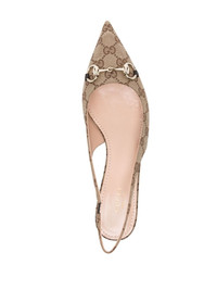 45mm GG Supreme pumps Highlights - Beige/brown - Gg supreme canvas - Signature horsebit detail - Pointed toe - Elasticated slingback strap - Branded footbed - Kitten heel - Leather sole - This piece comes complete with a protective dust bag. Made in Italy Composition Outer: Calf Leather 100%, Fabric 100% Lining: Calf Leather 100% Sole: Calf Leather 100% SIZE & FIT Measurement HEEL 2.16 in(5.5 cm)