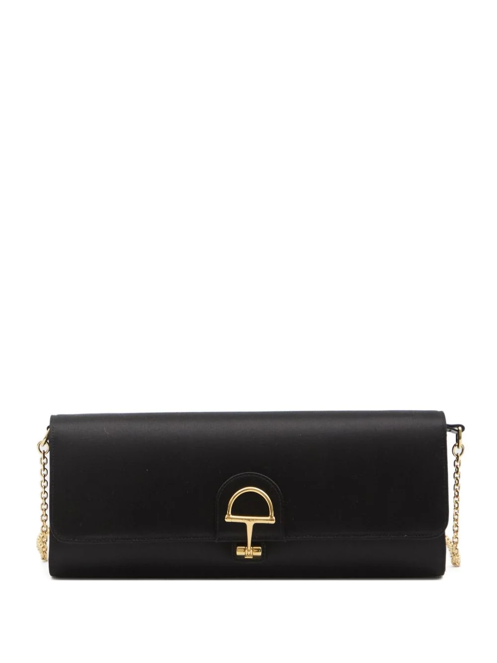 73 half-horsebit chain-strap clutch bag Highlights - Black - Horsebit detail - Magnetic button closure - Removable chain strap - Main compartment - Flat pocket - This piece comes complete with a protective dust bag. Made in Italy Composition Outer: Viscose 72%, Silk 28% SIZE & FIT Measurement DEPTH 1.18 in(3 cm) HEIGHT 4.13 in(10.5 cm) WIDTH 10.62 in(27 cm)