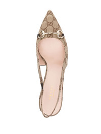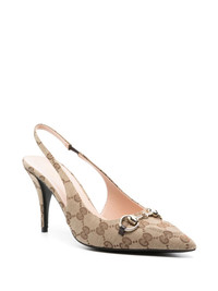 85mm Horsebit-detail pumps Highlights - Sand beige - Chocolate brown - Original gg canvas - Signature horsebit detail - Embossed detail - Pointed toe - Elasticated slingback strap - 85mm high stiletto heel - Leather outsole - This piece comes complete with a protective dust bag. Made in Italy Composition Outer: Calf Leather 100% Sole: Calf Leather 100% Lining: Calf Leather 100%, Fabric 100% SIZE & FIT Measurement HEEL 3.93 in(10 cm)