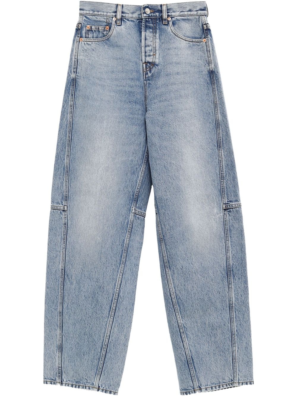 balloon jeans Highlights - Light blue - Concealed fly and button fastening - Belt loops - Classic five pockets - Logo patch to the rear Made in Italy Composition Fabric 100%