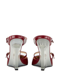 buckle-detail wedge mules Highlights - Dark red - Wedge heel - Double buckle straps - Pointed toe - Branded footbed Made in Italy Composition Outer: Leather 100% Lining: Leather 100% Sole: Leather 100% SIZE & FIT Measurement HEEL 4.33 in(11 cm)