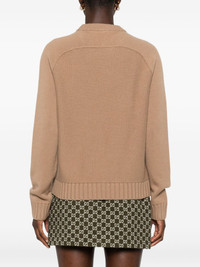 cable-knit long-sleeves sweater Highlights - Brown - Cable knit - Signature horsebit detail - Long sleeves - Ribbed cuffs - Ribbed hem Made in Italy Composition Calf Leather 100%, Brass 100%, Wool 70%, Cashmere 30% Washing instructions Dry Clean Only
