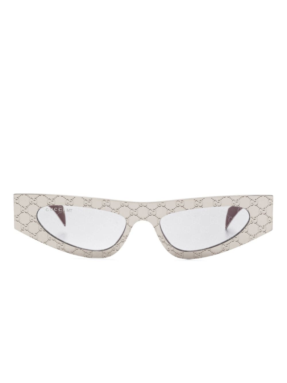 cat eye-frame sunglasses Highlights - Silver-tone - Engraved gg pattern - Lens decal - All-over lens decal pattern - Cat-eye frame - Tinted lenses - Uv-protective lenses - Straight arms - Curved tips - These glasses come with a protective case. Imported Composition Titanium 100% SIZE & FIT Measurement Arm Length 5.9 in(15 cm) Bridge Width 0.66 in(1.7 cm) Lens Diameter 1.96 in(5 cm) Total Width 5.7 in(14.5 cm)