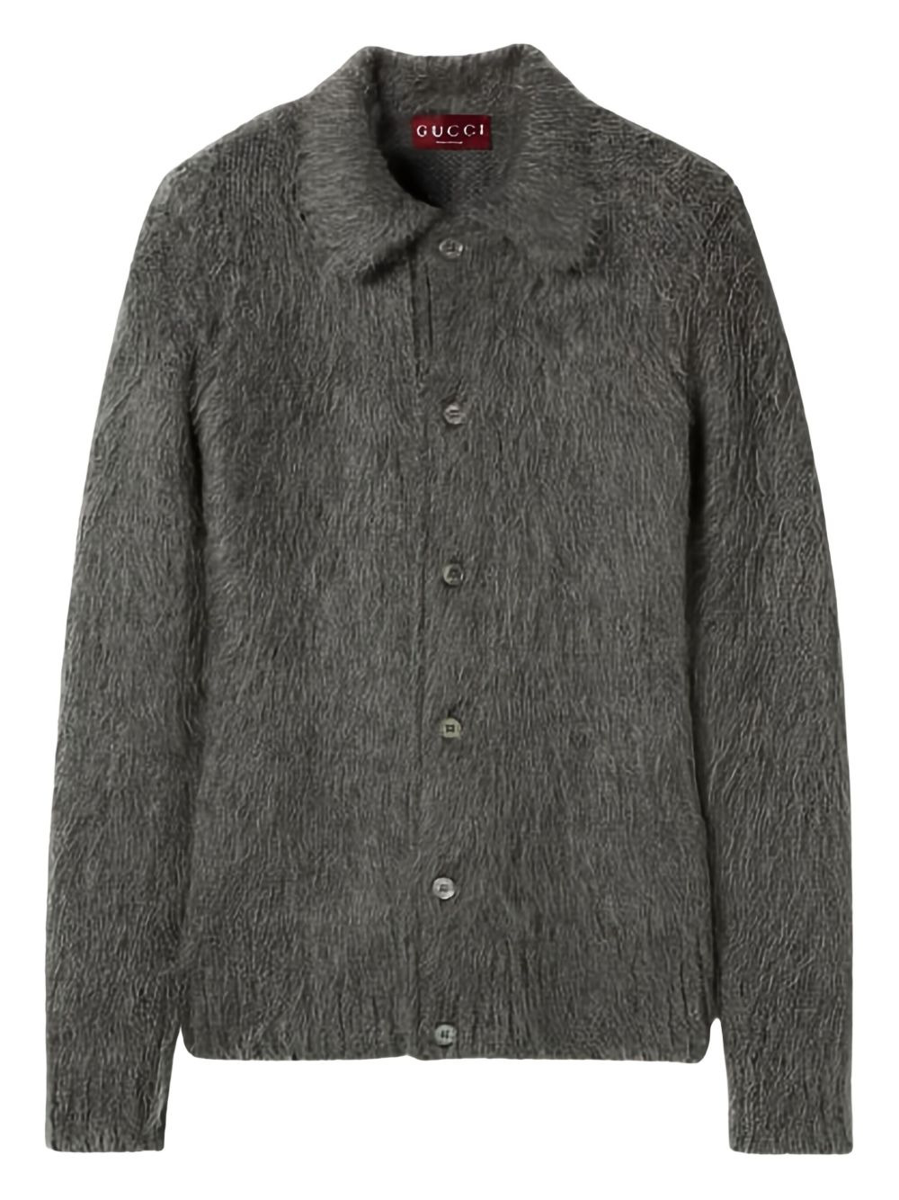 collared buttoned cardigan Highlights - Dark grey - Kent collar - Button fastening - Long sleeves Made in Italy Composition Wool 100%, Mohair 100% Washing instructions Read Manufacturer Guidelines