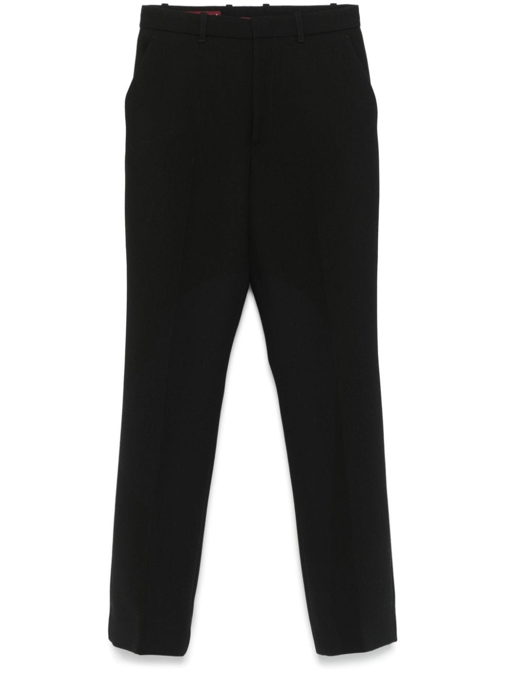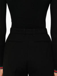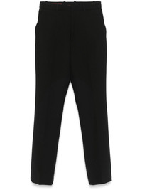 crepe wool trousers Highlights - Black - Wool - Crepe texture - Concealed front button, hook and zip fastening - Belt loops - Two diagonal pockets to the sides - Pressed crease - Two rear jetted pockets - Straight leg Made in Italy Composition Lining: Acetate 75%, Silk 25% Outer: Polyester 100%, Wool 100% Polyurethane 100% SIZE & FIT Model measurements Height 5 ft 10 in(1.77 m) Bust/Chest 33.07 in(84 cm) Hips 37 in(94 cm) Waist 24.8 in(63 cm) FittingInformation Designed with a bootcut leg, these trousers allow for a close fit at the waist and with an unrestricted, comfortable fit and additional room at the calves Made from a midweight non-stretch fabric