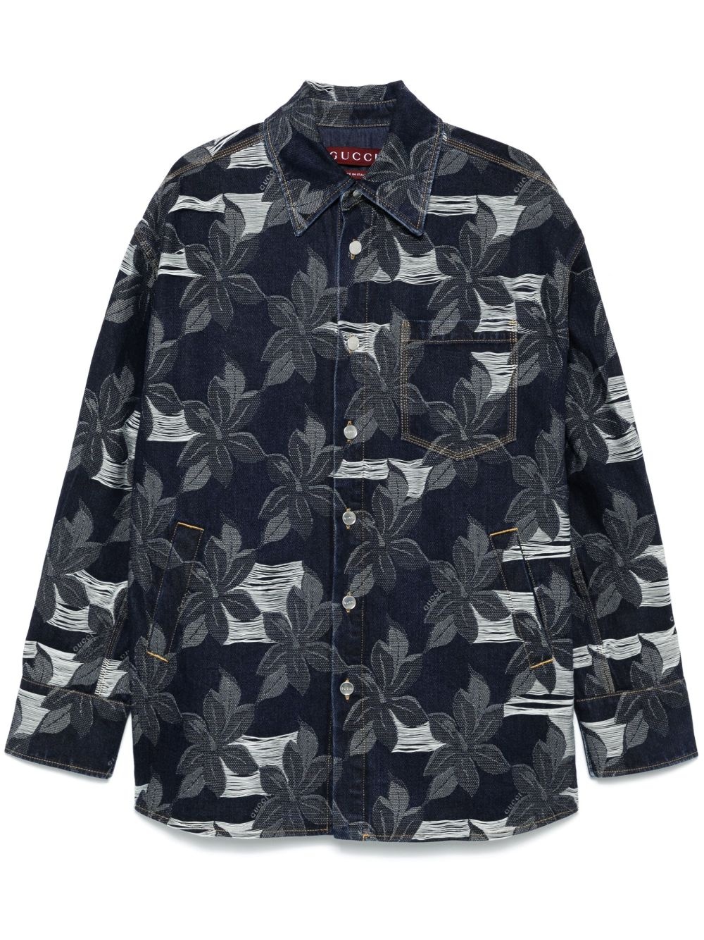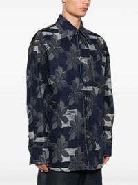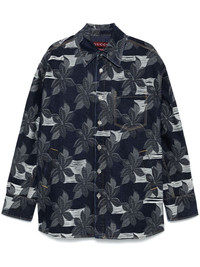 Cotton denim floral jacquard shirt