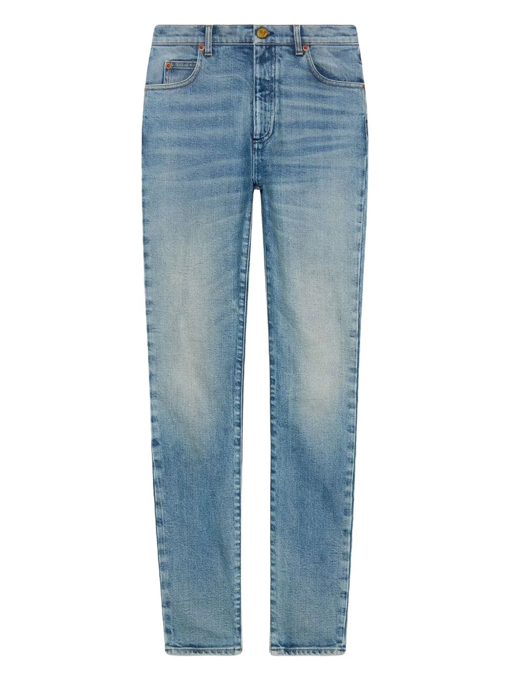 logo-print jeans Highlights - Blue - Front button fastening - Belt loops - Logo print to the rear - Classic five pockets Made in Italy Composition Cotton 98%, Spandex/Elastane 2%