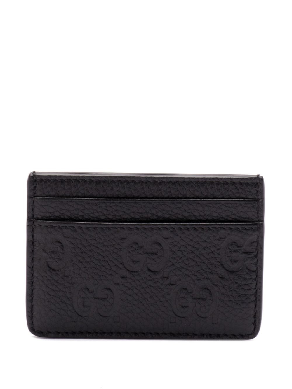 Double G cardholder Highlights - Black - Rectangle shape - Card slots Made in Italy Composition Lining: Polyester Taffeta 100% Outer: Grained Leather 100% SIZE & FIT Measurement LENGTH 3.93 in(10 cm) WIDTH 2.75 in(7 cm)