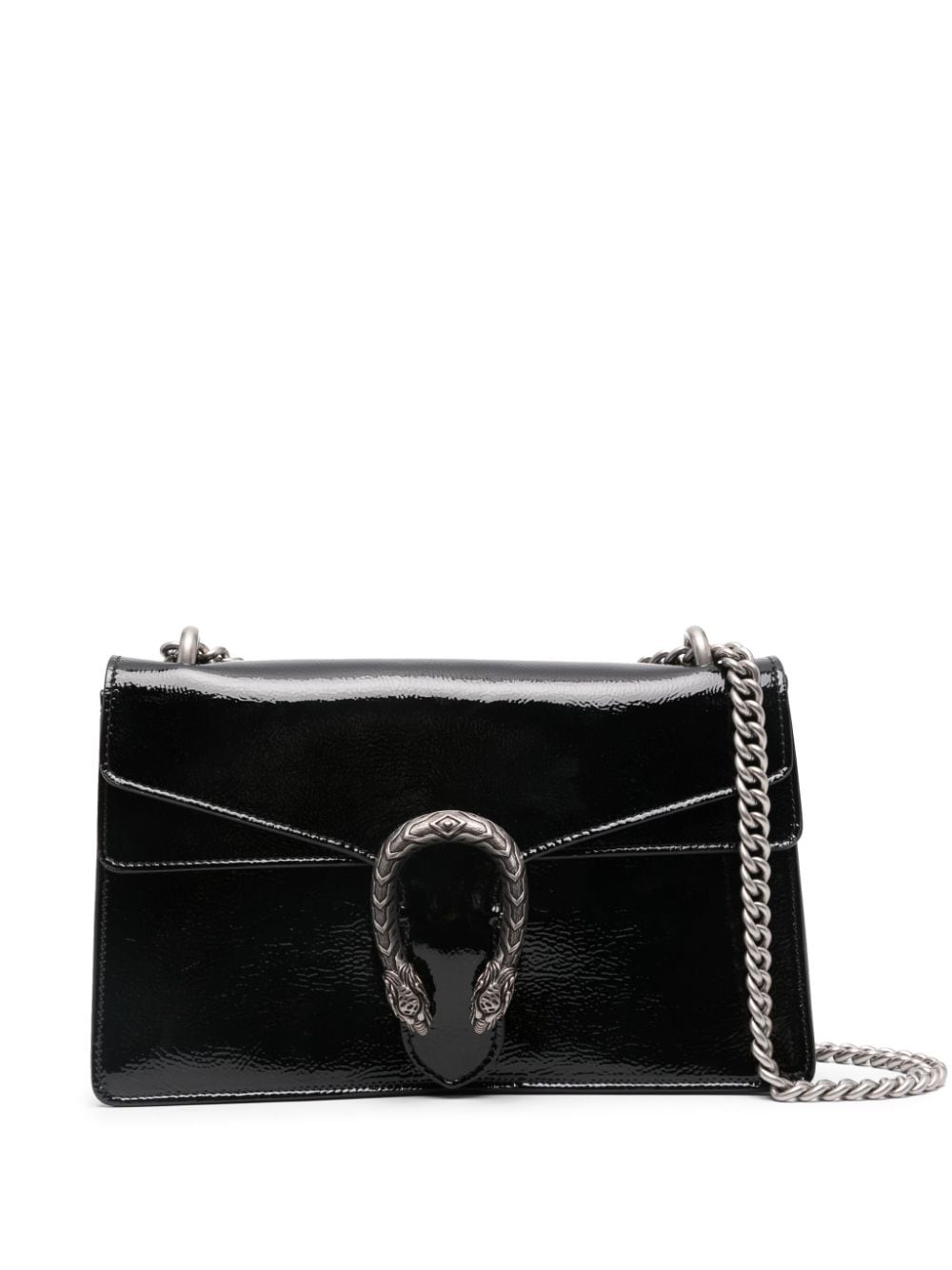 Dyonysus shoulder bag Highlights - Black - Calf leather - Grained texture - Patent finish - Signature tiger head motif - Foldover top - Pin-buckle fastening - Sliding chain-link shoulder strap - Slip pocket to the front - Partitioned compartment - Zip-fastening compartment Made in Italy Composition Outer: Calf Leather 100% SIZE & FIT Model measurements Height 5 ft 11 in(1.8 m) Bust/Chest 32.67 in(83 cm) Hips 35.82 in(91 cm) Waist 25.98 in(66 cm) Measurement DEPTH 2.75 in(7 cm) WIDTH 10.62 in(27 cm) HEIGHT 6.69 in(17 cm) STRAP 33.85 in(86 cm)