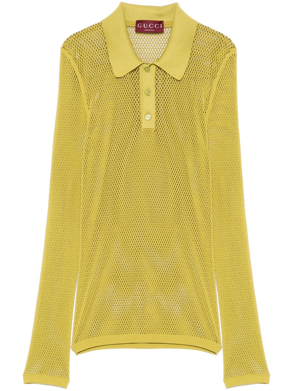 embossed mesh polo shirt Highlights - Apple green - Short front button fastening - Long sleeves - Straight hem Made in Italy Composition Silicone 100%, Polyamide 82%, Elastane 18% SIZE & FIT Model measurements Height 6 ft 2 in(1.87 m) Bust/Chest 38.18 in(97 cm) Hips 36.61 in(93 cm) Waist 29.13 in(74 cm) FittingInformation Made from a lightweight stretch fabric, this piece offers elasticity and flexibility when worn