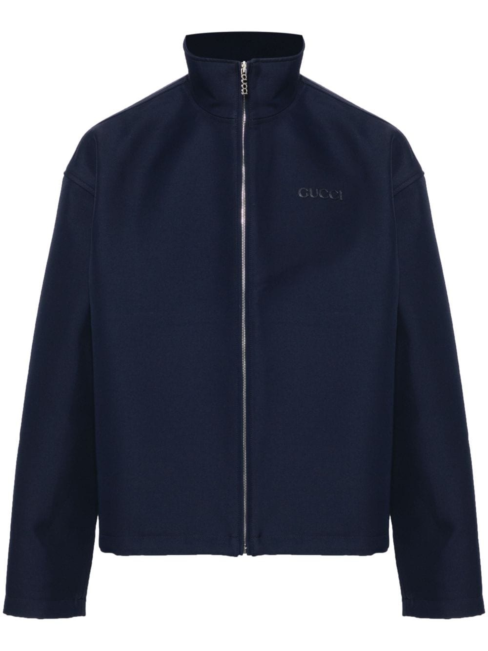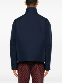 embroidered-logo jacket Highlights - Ink blue - Wool blend - Embroidered logo to the front - Front zip fastening - Funnel neck - Long sleeves - Two side welt pockets - Straight hem Made in Italy Composition Outer: Polyester 100%, Wool 56%, Acetate 42%, Silk 2% Lining: Cotton 100% SIZE & FIT Model measurements Height 6 ft 2 in(1.87 m) Bust/Chest 38.18 in(97 cm) Hips 36.61 in(93 cm) Waist 29.13 in(74 cm) FittingInformation Designed for an oversized fit, offering additional room throughout The internal drawstring at the hem allows for fitted preferences Made from a midweight non-stretch fabric