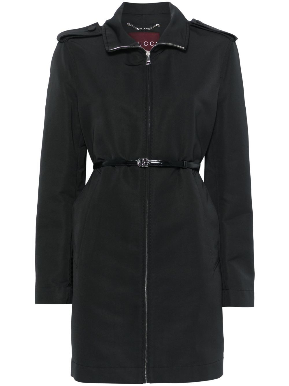 faille coat Highlights - Black - Front zip fastening - Detachable and adjustable waist belt - Two side welt pockets - Inverted pleat Made in Italy Composition Outer: Polyester 100%, CALFSKIN 100% Lining: Viscose 100% SIZE & FIT Model measurements Height 5 ft 10 in(1.78 m) Bust/Chest 33.46 in(85 cm) Hips 36.22 in(92 cm) Waist 23.22 in(59 cm) FittingInformation Designed to be unstructured, offering a loose fit throughout The belt offers adjustability for fitted preferences Made from a midweight non-stretch fabric Washing instructions Dry Clean Only