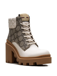 GG ankle boots With a sports-influenced style, these Gucci ankle boots are crafted from the house's iconic GG Supreme pattern. Quilted detailing adds a unexpected contrast at the ankle, creating a contemporary feel. Made in Italy Composition Outer: Leather 50%, Canvas 50% Sole: Rubber 100% SIZE & FIT Measurement HEEL 3.54 in(9 cm) Sole height 0.78 in(2 cm)