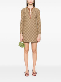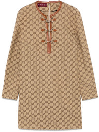 GG-canvas Horsebit-detail mini dress Highlights - Light brown - Concealed rear hook and zip fastening - Crew neck - Long sleeves - Straight hem Made in Italy Composition Lamb Skin 100%, Cotton 70%, Polyester 30% SIZE & FIT Model measurements Height 5 ft 10 in(1.78 m) Bust/Chest 33.85 in(86 cm) Hips 36.61 in(93 cm) Waist 26.77 in(68 cm) Measurement SLEEVE LENGTH 22.83 in(58 cm) HIPS 37.79 in(96 cm) LENGTH 31.88 in(81 cm) WAIST 32.28 in(82 cm) FittingInformation Designed for a relaxed fit, this piece allows for comfort and movement when worn Made from a midweight non-stretch fabric
