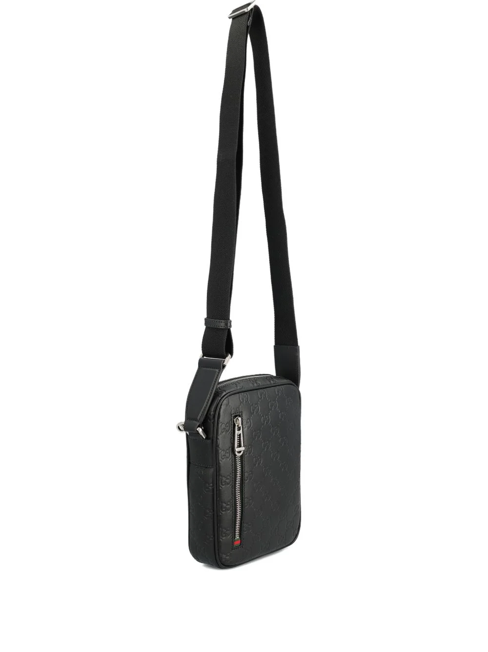 GG Emblem embossed shoulder bag Highlights - Black - Embossed pattern - Zip fastening - Adjustable shoulder strap - Silver-tone hardware Made in Italy Composition Outer: CALFSKIN 100% SIZE & FIT Measurement DEPTH 1.96 in(5 cm) HEIGHT 9.05 in(23 cm) WIDTH 6.29 in(16 cm)