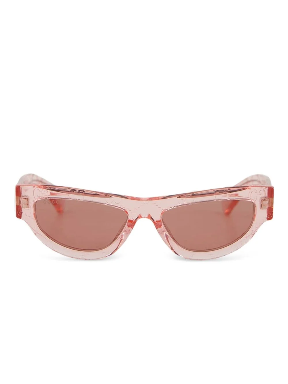GG embossed cat-eye sunglasses Highlights - Pink - Cat-eye frame - Embossed logo - Tinted lenses - These glasses come with a protective case. Made in Italy Composition Acetate 100% SIZE & FIT Measurement Arm Length 5.7 in(14.5 cm) Bridge Width 0.66 in(1.7 cm)