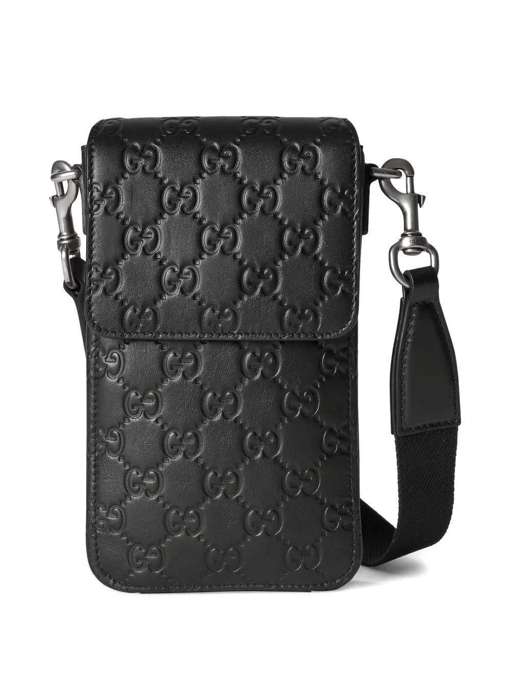 GG-embossed phone bag Highlights - Black - Gg motif - Detachable shoulder strap - Flap top - Silver-tone hardware Made in Italy Composition Outer: Calf Leather 100%