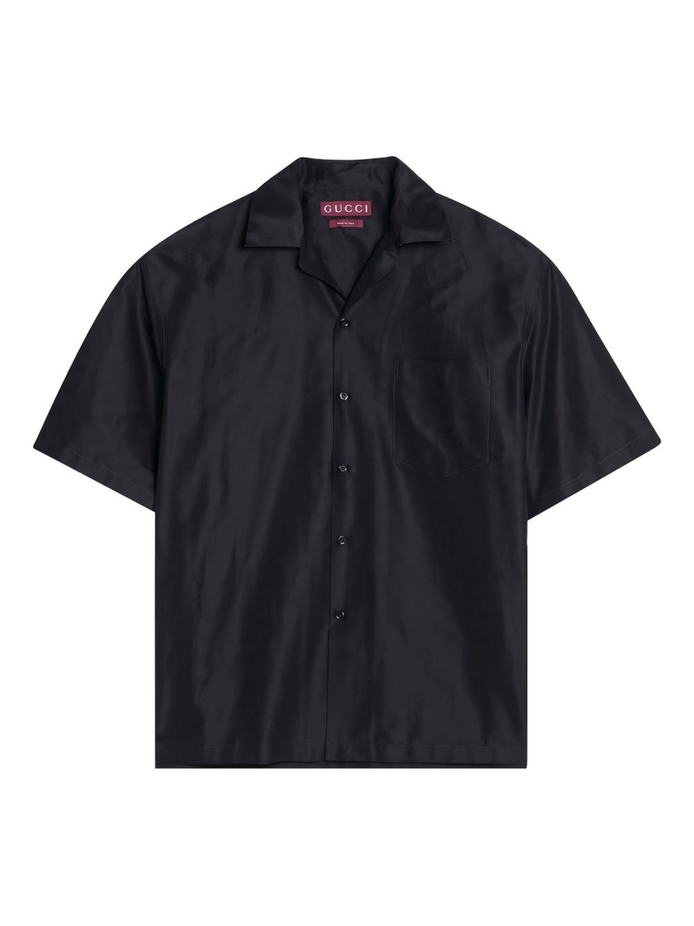 GG faille shirt Highlights - Black - Front button fastening - Chest patch pocket - Notched collar - Short sleeves Made in Italy Composition Cotton 69%, Silk 31% Washing instructions Dry Clean Only
