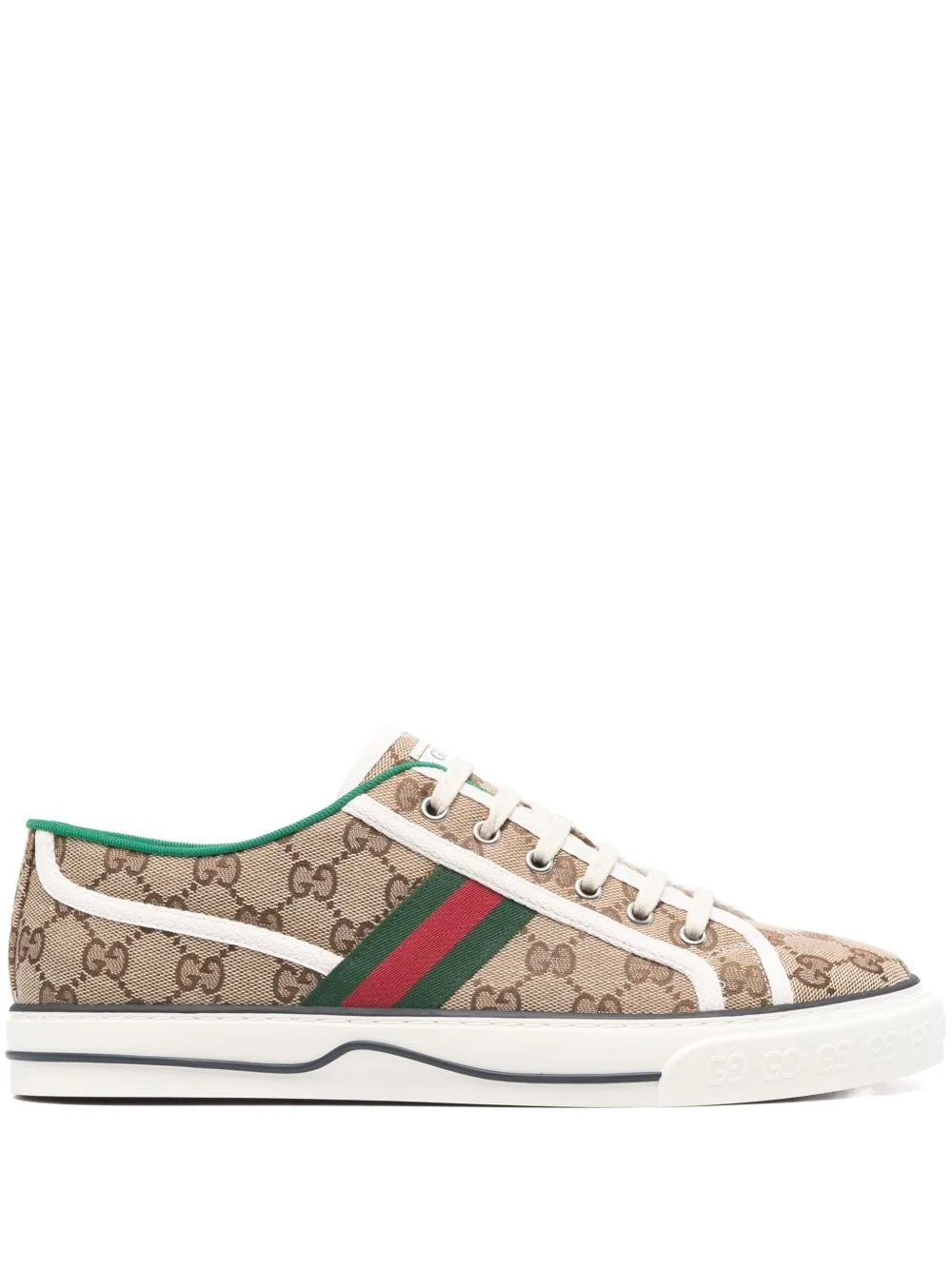 Tennis 1977 sneakers Highlights - Beige/multicolour - Classic gg canvas - Front lace-up fastening - Signature web detailing - Eyelet detailing - Logo patch at the tongue - Round toe - Branded insole - Rubber outsole Made in Italy Composition Outer: Canvas 100% Sole: Rubber 100% Lining: Fabric 100% SIZE & FIT FittingInformation This piece fits large – take one size down Measurement HEEL 0.98 in(2.5 cm) Sole height 0.59 in(1.5 cm)