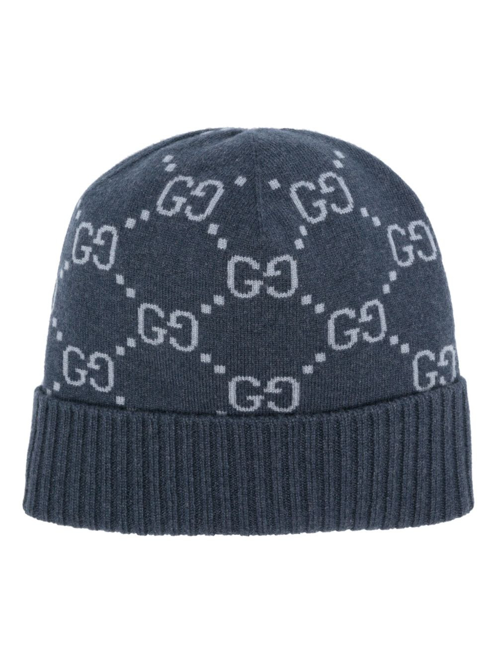 GG-jacquard cashmere beanie Highlights - Navy blue - Turn-up brim - Round crown Made in Italy Composition Cashmere 100% Washing instructions Dry Clean Only