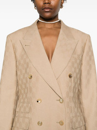 GG-jacquard double-breasted blazer Highlights - Beige - Wool - Gg jacquard - Dart detailing - Peak lapels - Double-breasted button fastening - Logo-debossed buttons - Shoulder pads - Long sleeves - Buttoned cuffs - Chest welt pocket - Three side flap pockets - American rear vent - Straight hem - Multiple internal slip pockets - Satin lining Made in Italy Composition Lining: Viscose 100%, Cupro 100% Outer: Wool 100% SIZE & FIT Model measurements Height 5 ft 11 in(1.8 m) Bust/Chest 31.49 in(80 cm) Hips 36.61 in(93 cm) Waist 24.4 in(62 cm) Measurement CHEST 37 in(94 cm) LENGTH 29.13 in(74 cm) SLEEVE LENGTH 23.62 in(60 cm) FittingInformation Designed for a slim fit that sits just away from the body offering a close yet comfortable fit The vented hem offers movement at the rear Made from a midweight non-stretch fabric This piece fits true to size – take your usual size