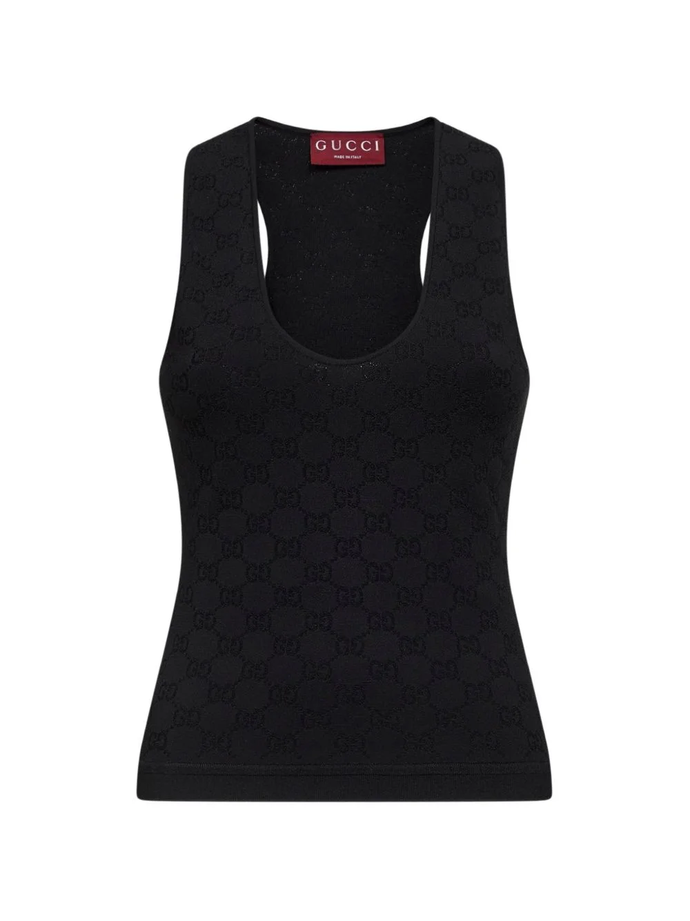 GG jacquard tank top Highlights - Black - Jacquard - U-neck - Racerback - Sleeveless - Straight hem Made in Italy Composition Viscose 85%, Polyester 15% Washing instructions Read Manufacturer Guidelines