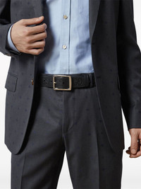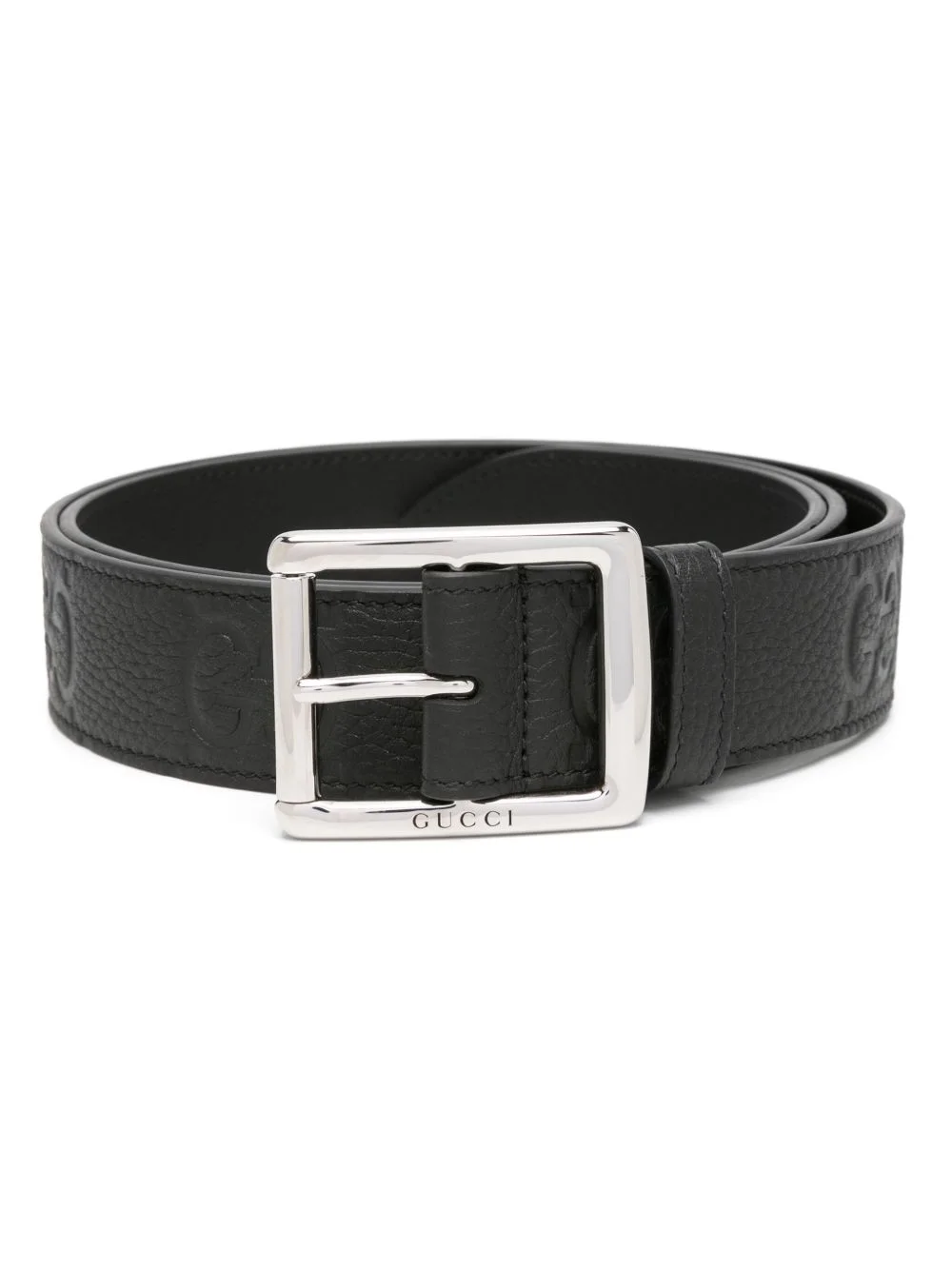 GG-debossed leather belt Highlights - Black - Calf leather - Grained texture - Debossed monogram pattern - Logo-engraved buckle - Silver-tone hardware - Adjustable fit - Buckle fastening - Punched holes - This piece comes complete with a protective dust bag. Made in Italy Composition Calf Leather 100% SIZE & FIT Measurement WIDTH 1.37 in(3.5 cm)