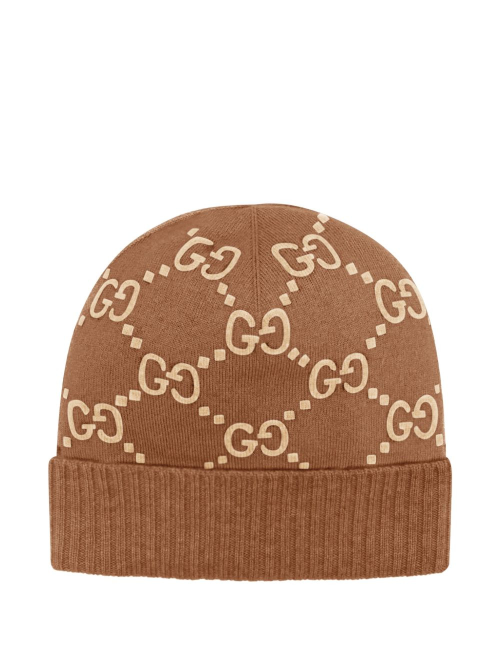GG-jacquard cashmere beanie Highlights - Brown - Pull-on style - Turn-up brim - Round crown Made in Italy Composition Cashmere 100%