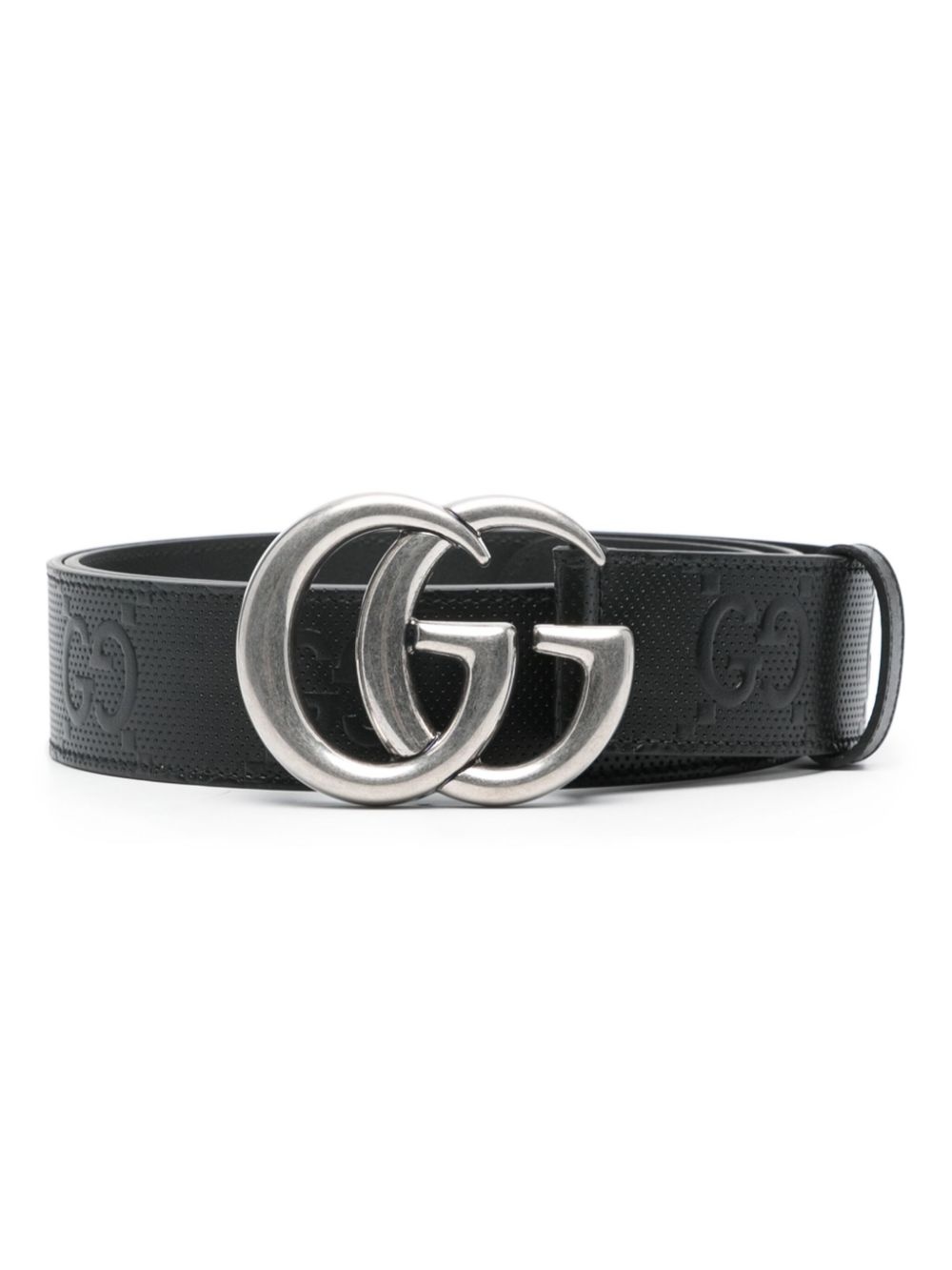 GG Marmont embossed belt Part of the Marmont family, Gucci's belt is embossed with the brand's iconic Interlocking G motif all over that is framed with a silver-tone GG plaque at the centre. Highlights - Black - Calf leather - Logo-buckle detail - Signature marmont quilting - Belt loops - Punch-hole detailing - Pin-buckle fastening Made in Italy Composition Calf Leather 100% SIZE & FIT Measurement Maximum Length 41.33 in(105 cm) Minimum Length 37.4 in(95 cm) TOTAL LENGTH 1.57 in(4 cm)
