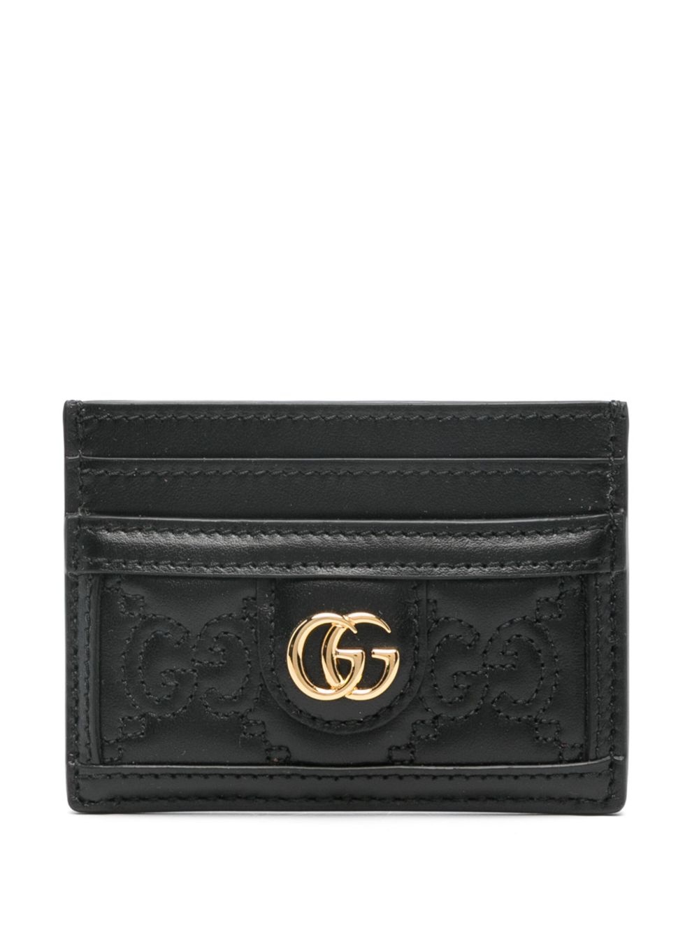 GG matelasse card case Gucci exhibits a modern approach to branding with this cardholder. Fabricated from soft matelasse leather, this accessory features a textured design, accompanied by a gold-tone logo plaque for a branded finish. Highlights - Black - Leather - Matelasse detail - Signature gg supreme embroidery - Signature double g logo - Card slots - Note compartment Made in Italy Composition Outer: Calf Leather 100% SIZE & FIT Measurement LENGTH 3.93 in(10 cm) WIDTH 2.75 in(7 cm)