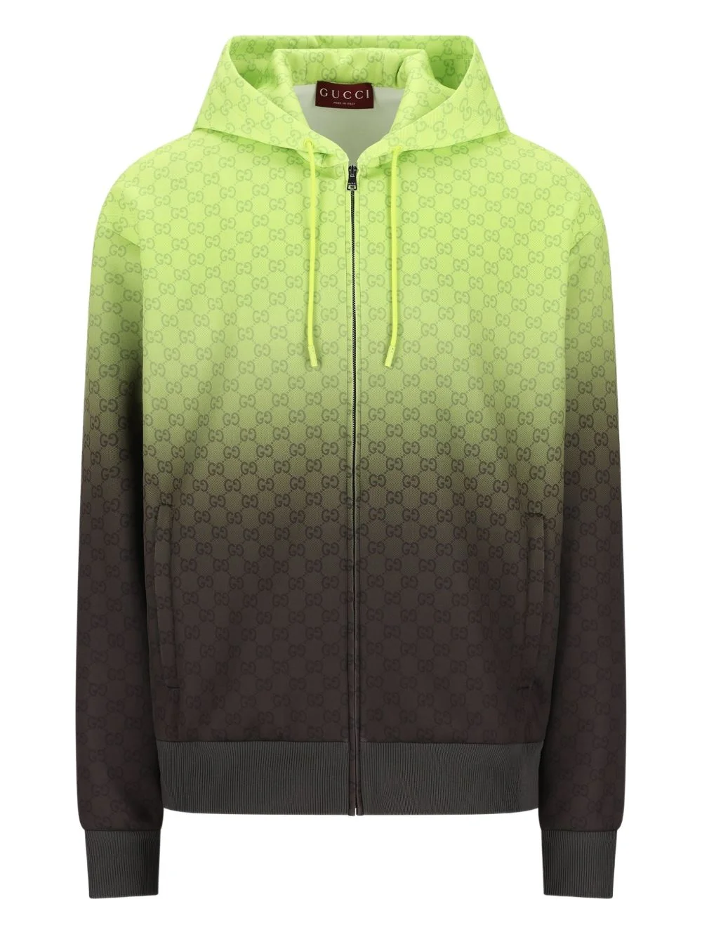 GG-motif hoodie Highlights - Green - Gg motif - Gradient effect - Front zip closure - Drawstring hood - Slash pockets Made in Italy Composition Fabric 100% Washing instructions Read Manufacturer Guidelines