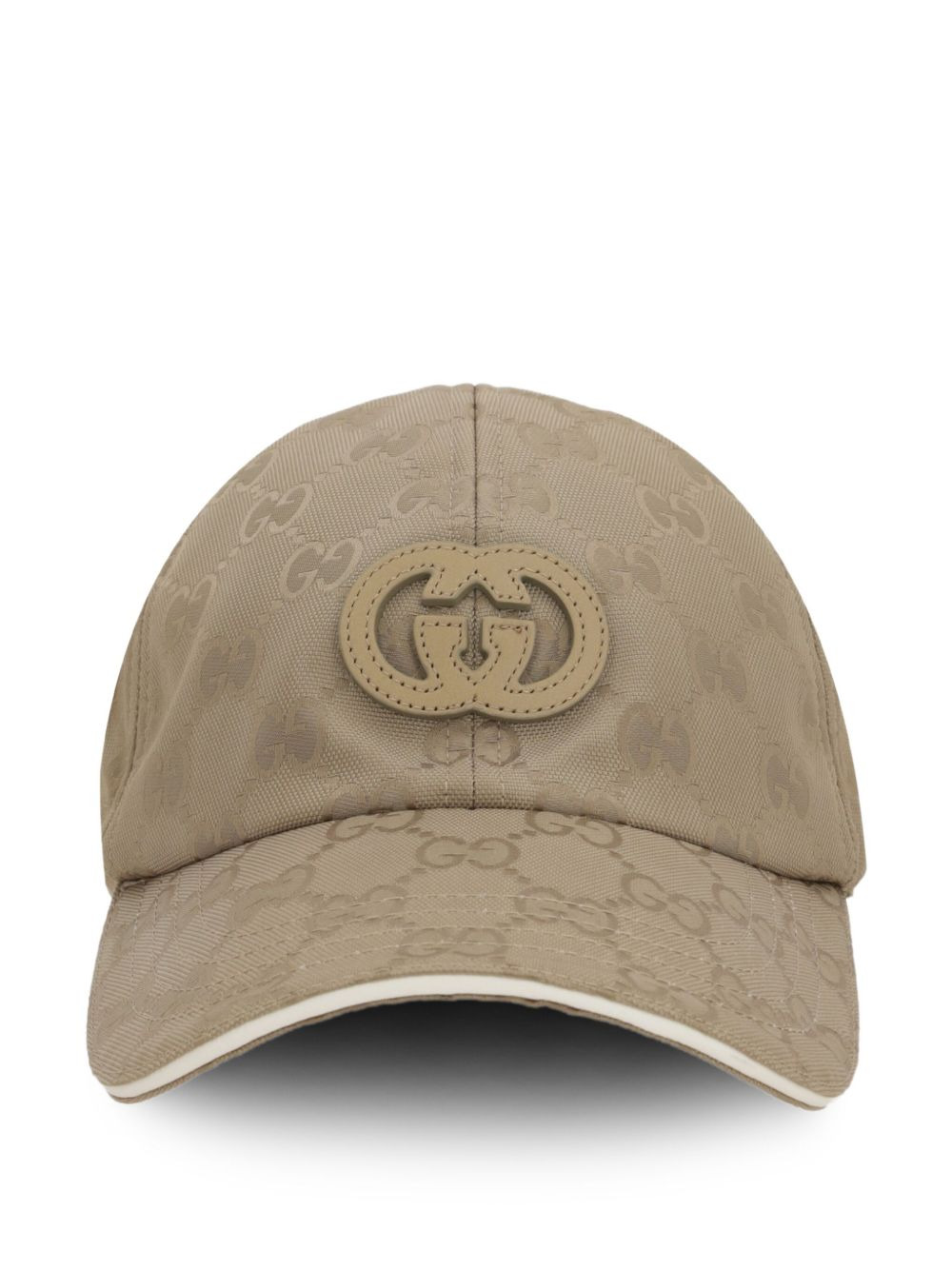 GG-pattern baseball cap Highlights - Beige - Gg monogram pattern - Leather interlocking g patch - Leather-trimmed brim - Adjustable strap - Metal buckle Made in Italy Composition Calf Leather 100%, Nylon 100%