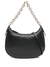 GG-pattern chain-strap bag Highlights - Black - Calf leather - Embossed gg pattern - Chain strap - Zip fastening - Crescent shape Made in Italy Composition Outer: Calf Leather 100% SIZE & FIT Model measurements Height 5 ft 10 in(1.77 m) Bust/Chest 33.07 in(84 cm) Hips 37 in(94 cm) Waist 24.8 in(63 cm) Measurement DEPTH 2.75 in(7 cm) HEIGHT 7.87 in(20 cm) WIDTH 12.59 in(32 cm)