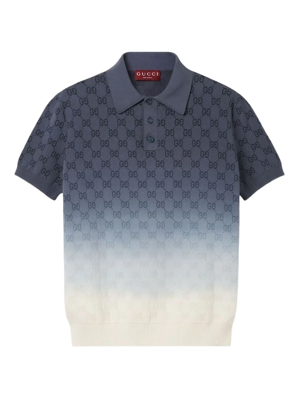GG-pattern gradient polo shirt Highlights - Dark blue - Gg pattern - Gradient effect - Short sleeves - Polo collar - Button fastening Made in Italy Composition Cotton 100% Washing instructions Read Manufacturer Guidelines