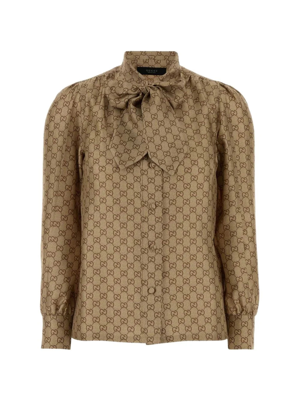 GG-pattern shirt Highlights - Brown - Gg pattern - Long sleeves - Buttoned cuffs - Button fastening - Tie fastening Made in Italy Composition Silk 100% Washing instructions Read Manufacturer Guidelines