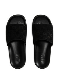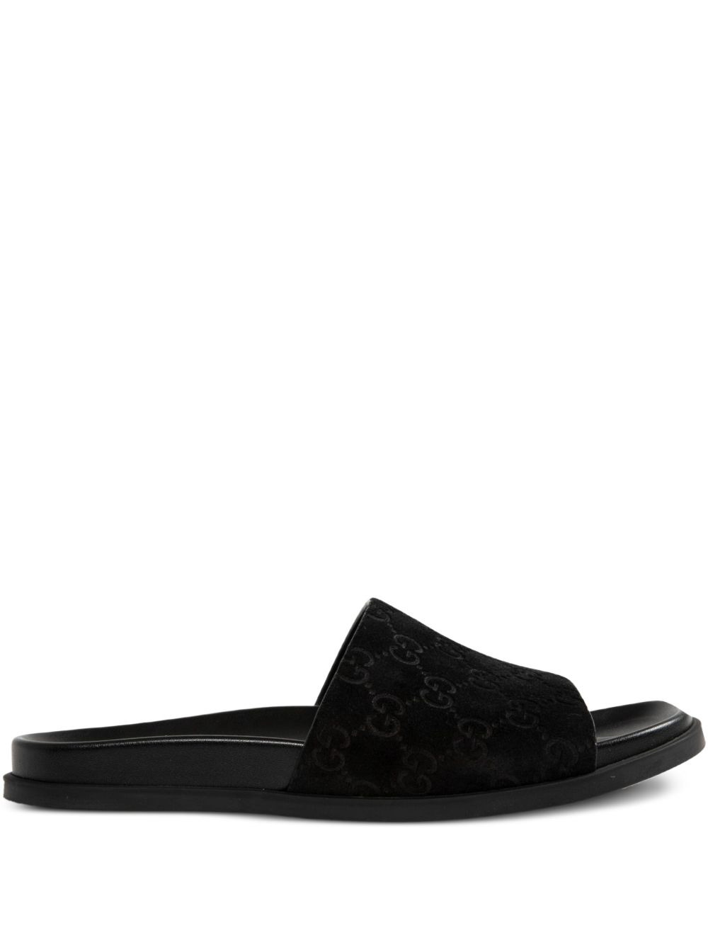 GG-pattern suede sandals Highlights - Black - Suede - Flat - Open toe Made in Italy Composition Outer: Suede 100% Lining: Leather 100% Sole: Rubber 100%