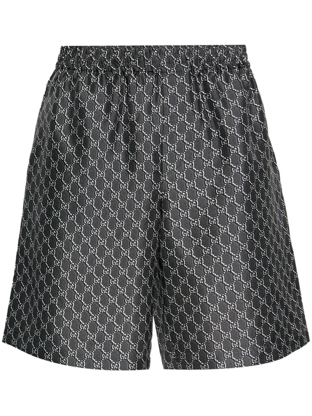GG-print silk twill shorts Highlights - Grey/white - Silk - Classic gg canvas - Elasticated waistband - Two side inset pockets - Knee-length - Full lining Made in Italy Composition Outer: Silk 100% Lining: Viscose 100% Washing instructions Read Manufacturer Guidelines