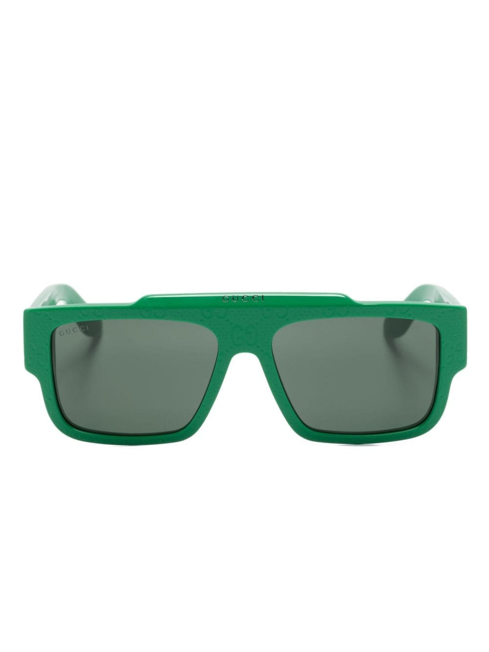 GG rectangle-frame sunglasses Highlights - Bright green - Acetate - Signature gg motif debossed - Rectangle frame - Tinted lenses - Uv-protective lenses - Sculpted arms with curved tips - These glasses come with a protective case. Made in Italy Composition Acetate 100% SIZE & FIT Measurement Arm Length 5.7 in(14.5 cm) Bridge Width 0.62 in(1.6 cm) Lens Diameter 2.2 in(5.6 cm) Total Width 5.51 in(14 cm)