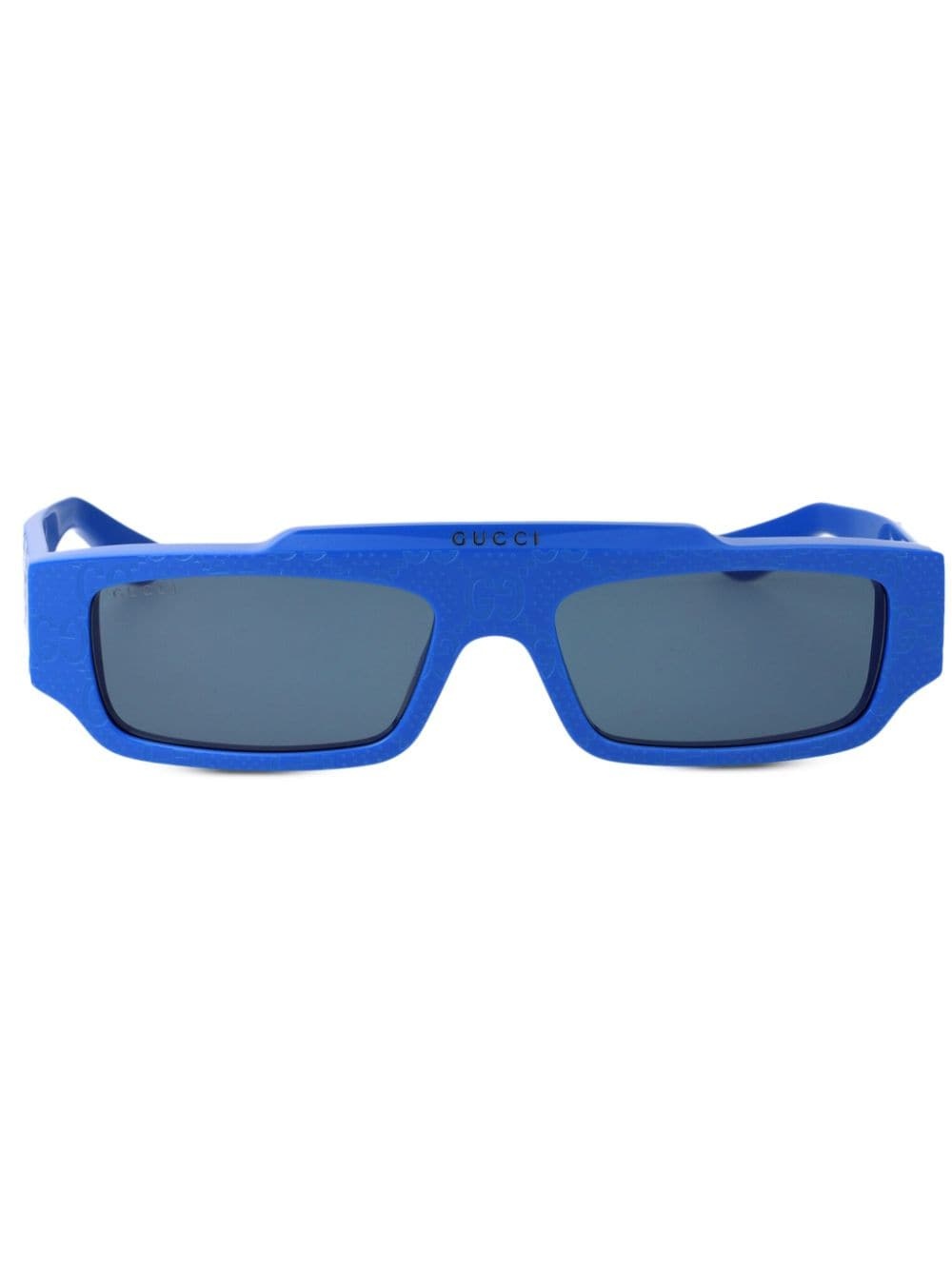 GG rectangle-frame sunglasses Highlights - Blue - Recycled acetate - Signature gg debossed monogram - Rectangle frame - Logo print to the front - Blue tinted lenses - Straight arms - Curved tips - These glasses come with a protective case. Made in Italy Composition Recycled Acetate 100% SIZE & FIT Measurement Arm Length 5.7 in(14.5 cm) Bridge Width 0.66 in(1.7 cm) Lens Diameter 2.16 in(5.5 cm)
