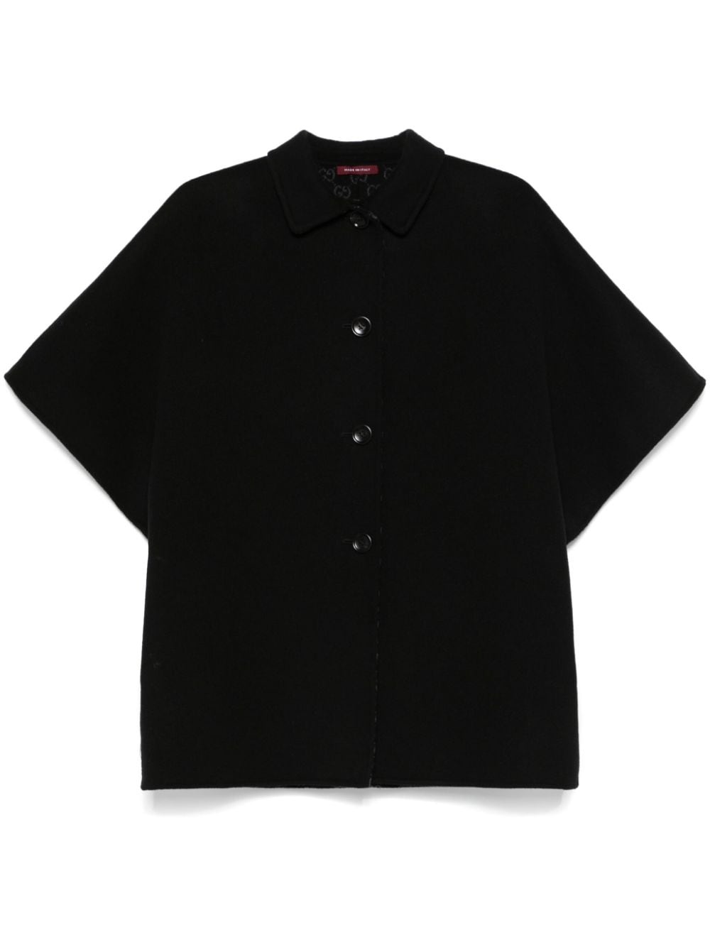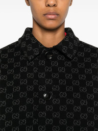 GG reversible coat Highlights - Black/grey - Wool-silk blend - Felted finish - Front button fastening - Reversible - All-over gg motif - Spread collar - Short sleeves - Two side inset pockets - Straight hem Made in Italy Composition Outer: Wool 99%, Silk 1% Lining: Cupro 100% SIZE & FIT Model measurements Height 5 ft 10 in(1.77 m) Bust/Chest 33.07 in(84 cm) Hips 37 in(94 cm) Waist 24.8 in(63 cm) FittingInformation Designed for a boxy fit, intended for a loose fit throughout Made from a midweight non-stretch fabric Washing instructions Dry Clean Only