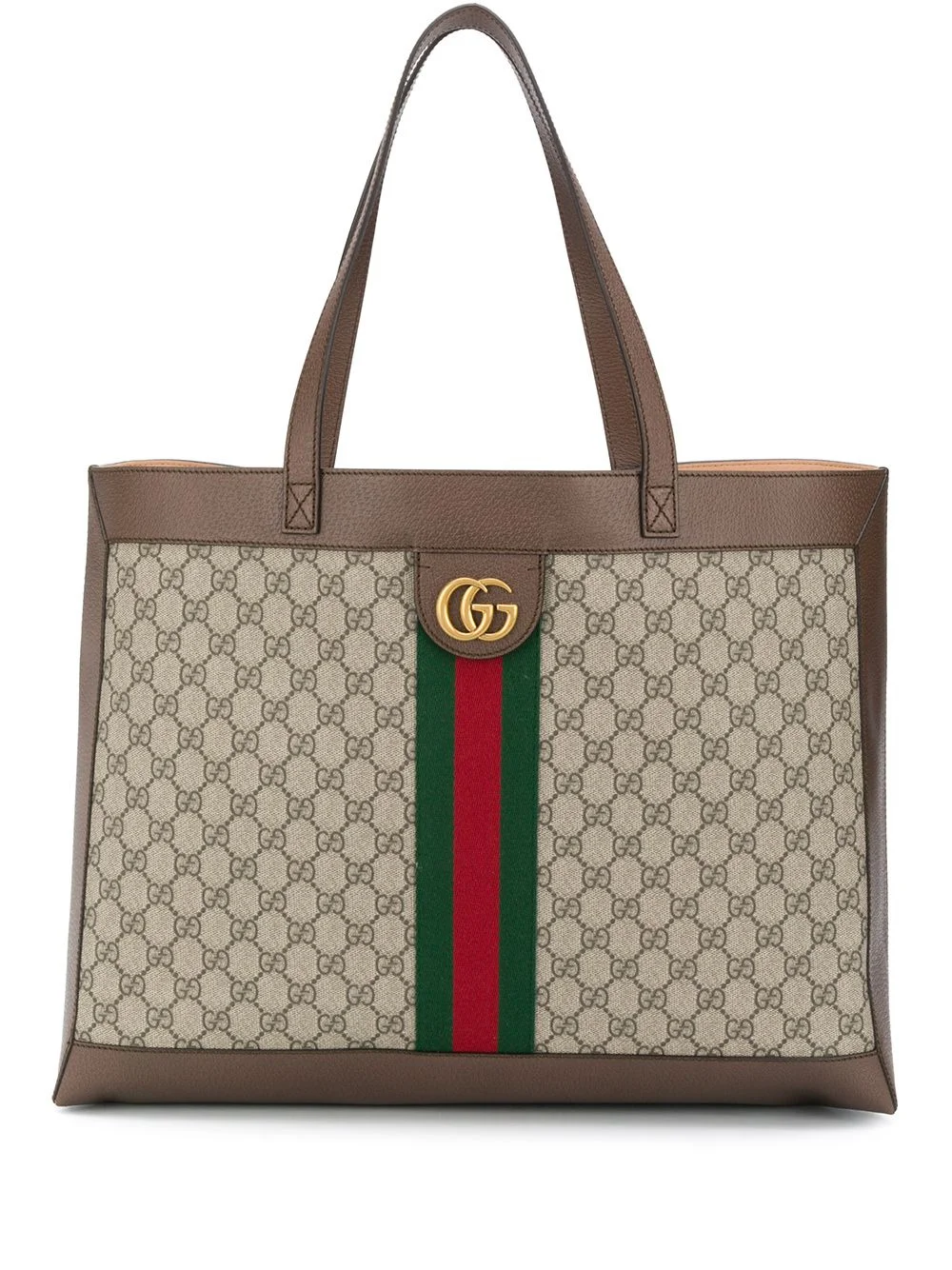 GG Supreme shoulder bag There's no competing with a piece of classic like this GG Supreme tote from Gucci. Crafted from brown leather with a beige canvas body, it has the signature Sylvie Web strap on the front, accompanied by a double GG plaque in gold-tone. Keep the classics alive, they won't disappoint. Highlights - Brown/beige - Leather - Gg supreme canvas - Signature double gg plaque on the front - Sylvie web detail - Flat top handles - Removable pouch Made in Italy Composition Outer: Leather 100% SIZE & FIT Measurement DEPTH 5.9 in(15 cm) HANDLE 9.84 in(25 cm) HEIGHT 13.77 in(35 cm) WIDTH 17.32 in(44 cm)