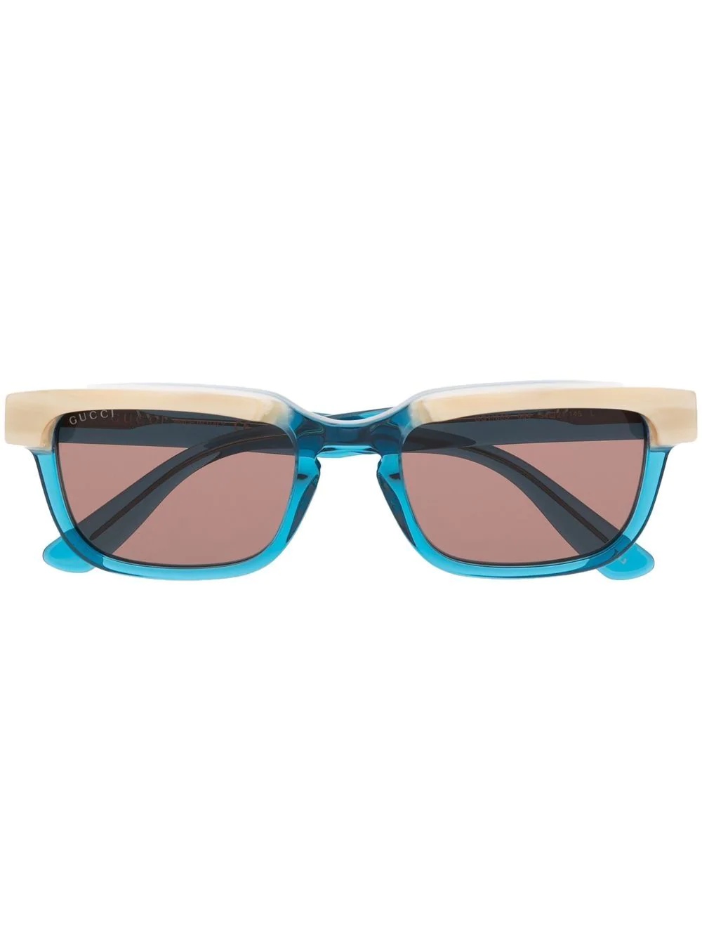 GG1166S rectangular sunglasses blue/cream rectangle frame brown tinted lenses logo-debossed arm straight arms These glasses come with a protective case. All glasses from FARFETCH are sold as non-prescription frames. Made in Italy Composition Acetate 100% SIZE & FIT Measurement Arm Length 5.7 in(14.5 cm) Bridge Width 0.82 in(2.1 cm) Lens Diameter 2.12 in(5.4 cm) Total Width 5.7 in(14.5 cm)